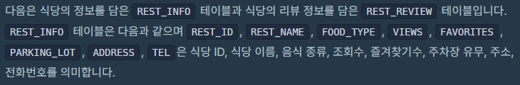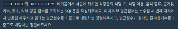 코딩테스트 연습 - 서울에 위치한 식당 목록 출력하기