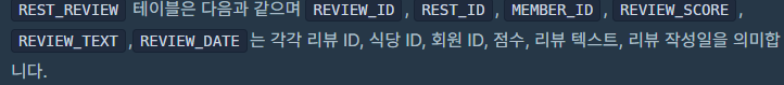 여기서 GROUP BY로 같은 식당ID면 그룹화 시켜주고 그 그룹들의 리뷰평균을 구하면 될 것이다.
