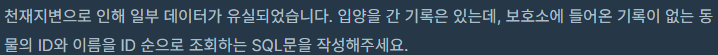 여기서 INS의 기록이 없어야하고 결과는 ID로 정렬