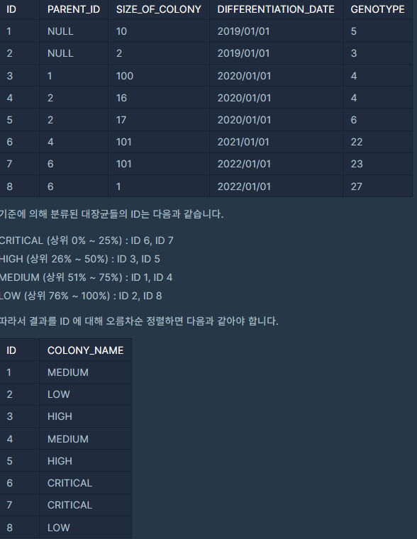 WHEN NTILE(4) OVER (order by SIZE_OF_COLONY) = 1 THEN 'LOW'